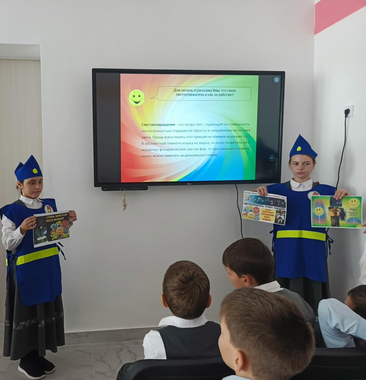 В завершение классного часа была показана презентация «Стань заметным на дороге!», где ребята с интересом обсуждали различные ситуации на дорогах и давали верный ответ.