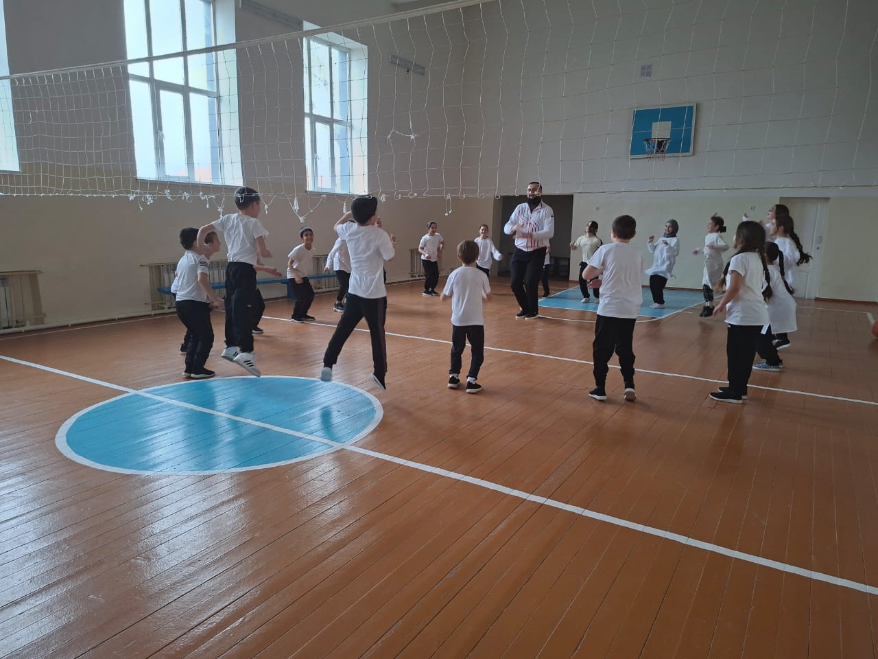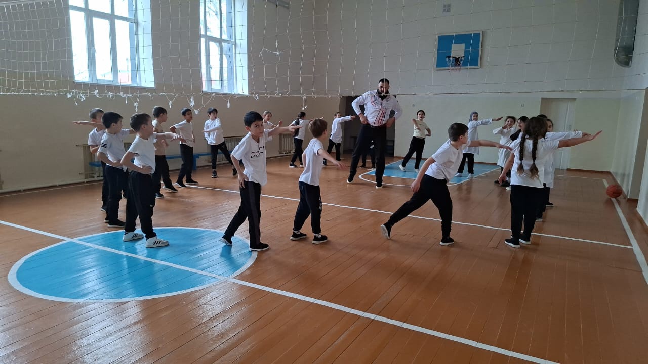 Мероприятие началось с приветственного слова директора школы, который подчеркнул важность физической культуры для гармоничного развития личности и поблагодарил спортсмена за участие в акции. После вступительной речи Сумрат Рамзанович провел для ребят разминку, показав несколько простых, но эффективных упражнений, которые можно легко выполнять дома или на школьной площадке.
