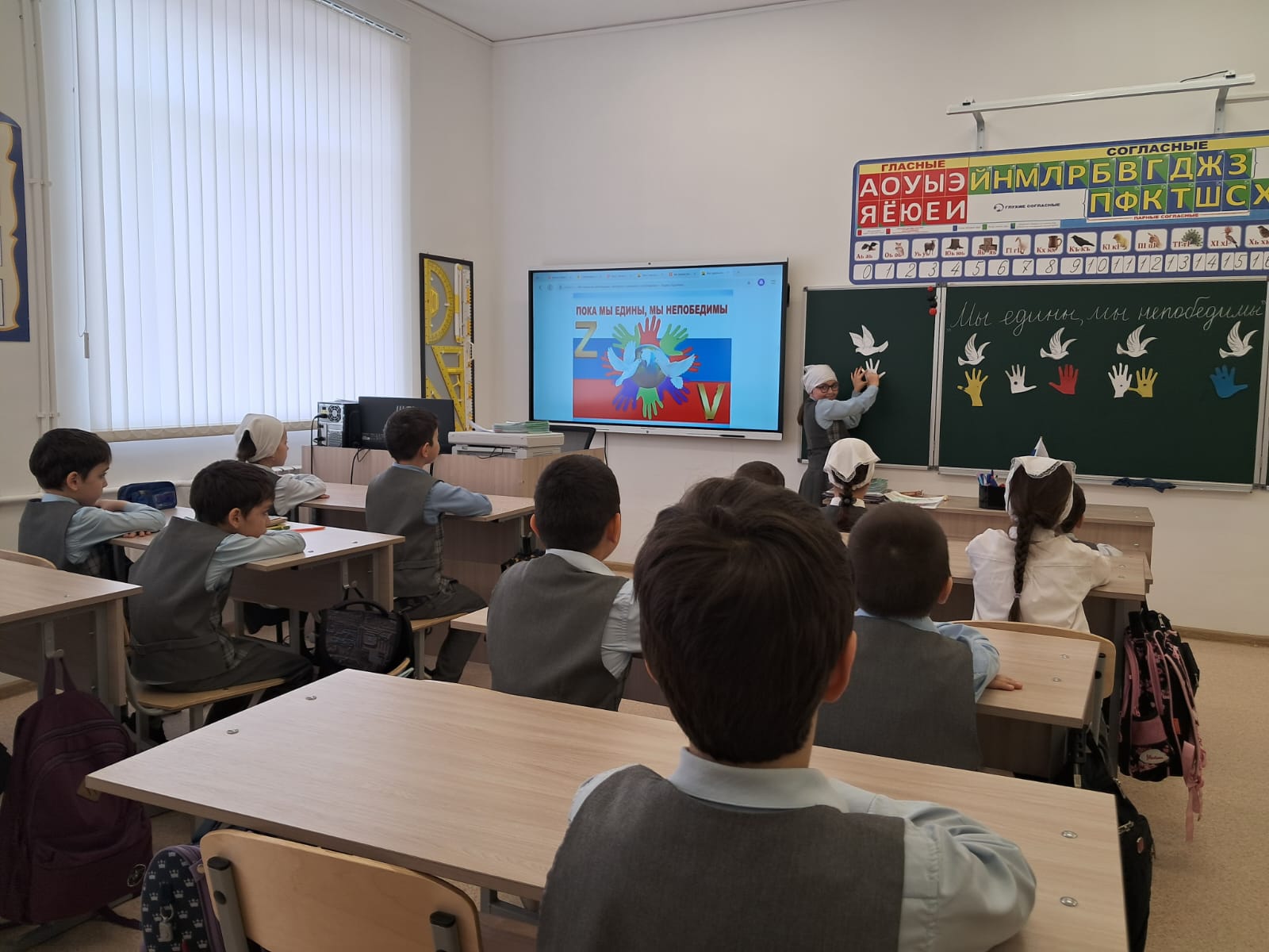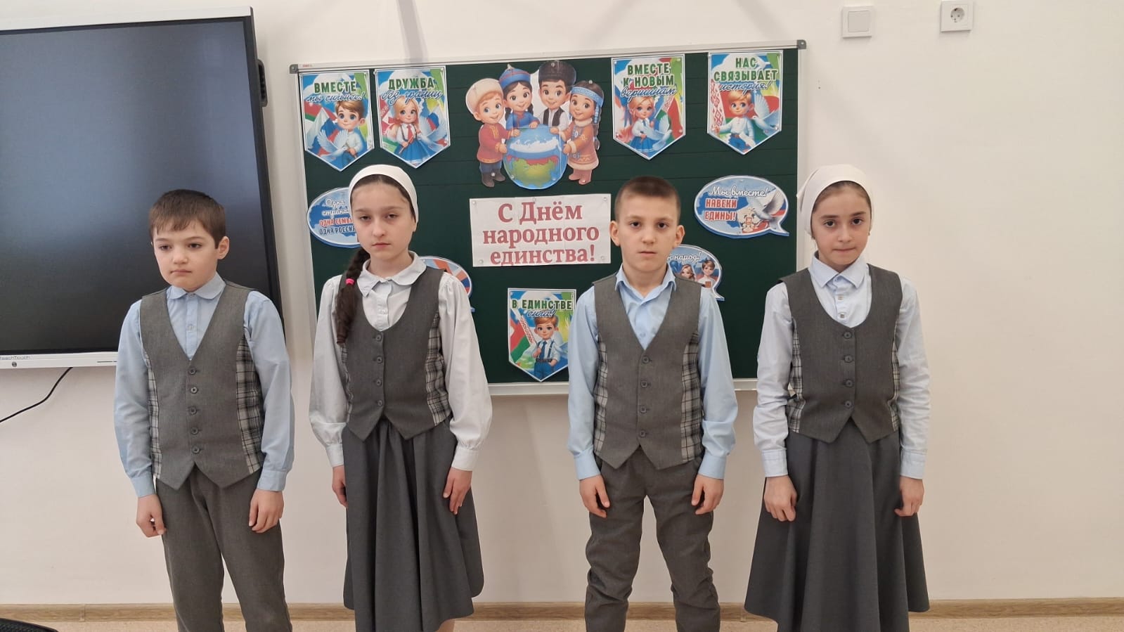 В МБОУ " Новотерская НОШ имени М.Амаева " прошли классные часы на тему:" Когда мы едины, мы непобедимы".