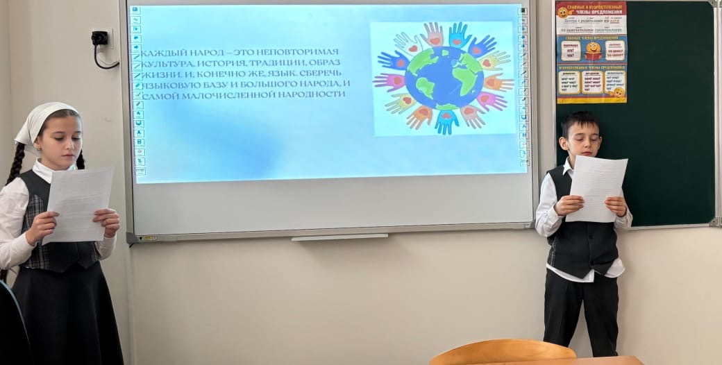 21.02.2026В 4"А" классе был проведен классный час на тему "День родного языка". Цель: Познакомить учащихся с «Международным Днем родного языка»; формировать понятие «родной язык»; воспитывать уважение и любовь к родному языку; обогащать духовный мир детей.